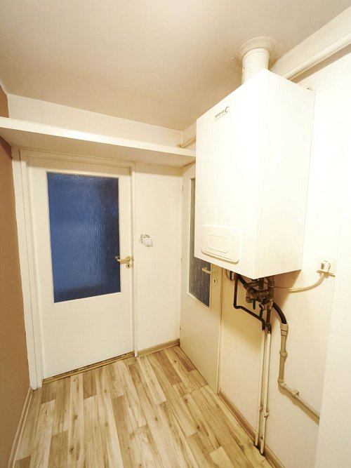 Vytápění a ohřev vody vlastním plynovým kotlem.
