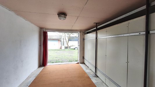 Obě garáže jsou ve velmi dobrém stavu. Jsou napojeny na elektřinu a mají vlastní osvětlení. Denní světlo je zajištěno prostřednictvím luxfer, což zvyšuje komfort při užívání prostoru.